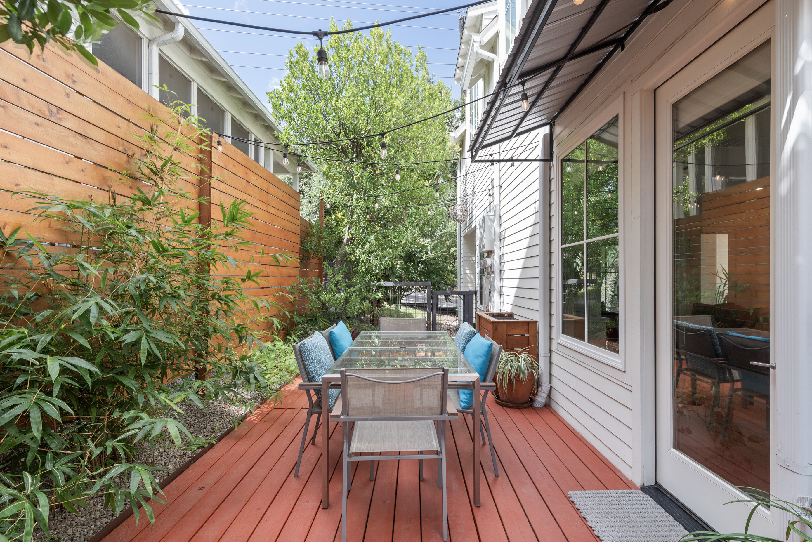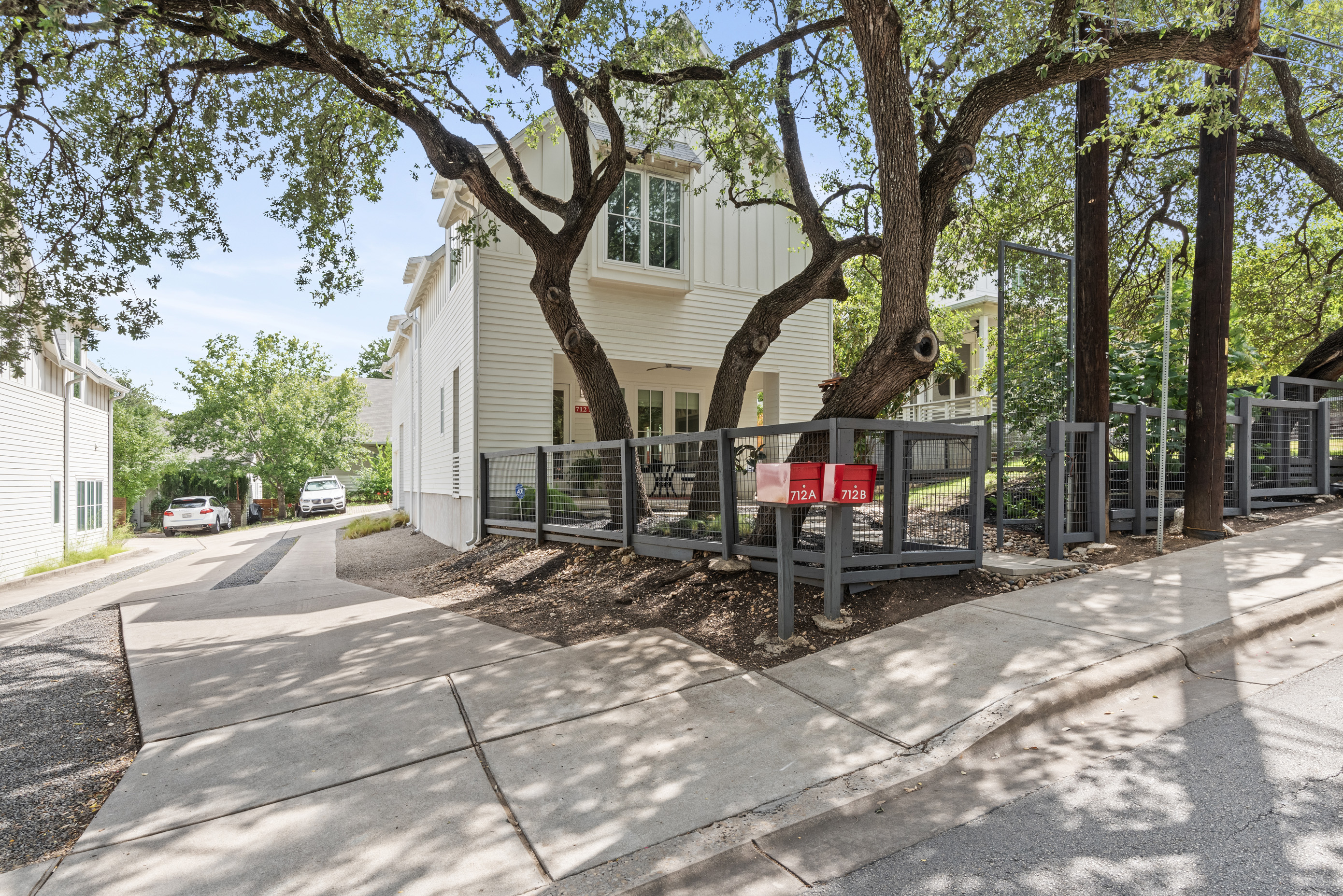 Ask me to list why 712 Cardinal is the best Moore-Tate on the block, and I’ll sing like a bird with highlights until you ask me to stop. The only 4 bed Moore-Tate resale in 78704, this spacious open living plan will expand your mind. Bougie built-ins in the first living area belie that you are enveloped in quality and detail. Wander to the dry bar next to the kitchen, then promenade to the plant-filled patio, which is intimate and feels longer than it is. Storage abounds around this singular floorplan, and nary a corner is wasted. A dedicated living room graces the upstairs, and another living nook begs for your lifestyle interpretation. The covered porch out front doubles as a loungey respite from which to wave at neighbors and a perch to ponder what plants might compliment your mature fig tree. Low maintenance native landscaping spans the front fenced garden. Moore-Tate has a fan base, a waiting list, and a celebrated track record of over 200+ happy homeowners ONLY in 78704. They are proven design-build trailblazers that have rocketed to the No. 1 woman-owned urban Austin home builder who hires local, buys local, and gives back.
